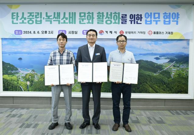 [뉴스서울] 거제시는 6일 시장실에서 탄소중립·녹색소비 활성화를 위해 롯데마트 거제점, 홈플러스 거제점과 업무협약을 체결했다.