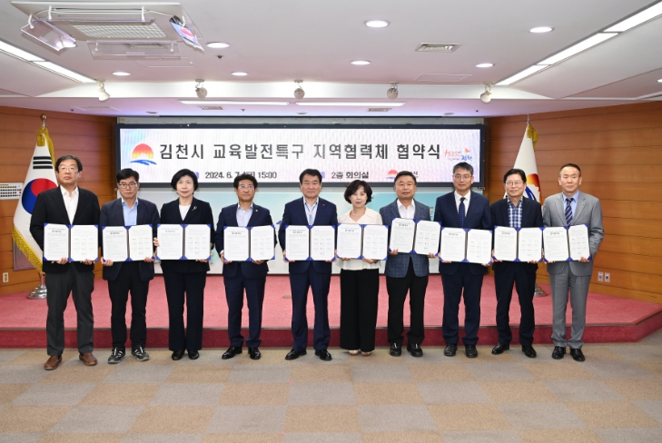 [뉴스서울] 김천시(시장 김충섭)는 지난 6월 7일 금요일 시청 2층 회의실에서 교육발전특구 시범지역 지정을 위한 지역 협력체 업무협약식을 열었다.