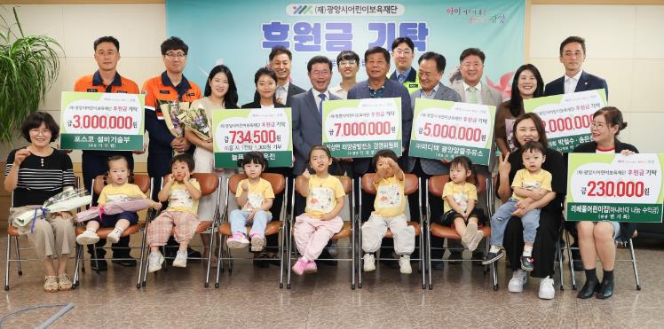 [뉴스서울] (재)광양시어린이보육재단은 25일 정인화 광양시장, 이광용 이사장, 김희영 상임이사, 기탁자를 비롯한 관계자 20여 명이 참석한 가운데 후원금 기탁식을 가졌다.
