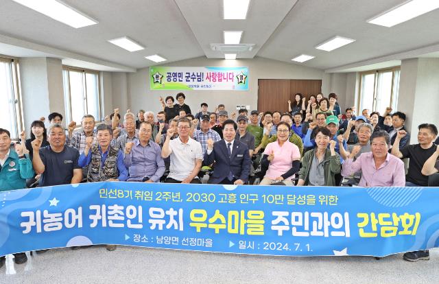 직원 소통의 날 행사 후에는 ‘2030 고흥 인구 10만 달성’을 위한 귀농어 귀촌인 유치 우수마을 주민과의 간담회를 위해 남양면 선정마을을 찾아 60여 명의 주민들과 함께했다.