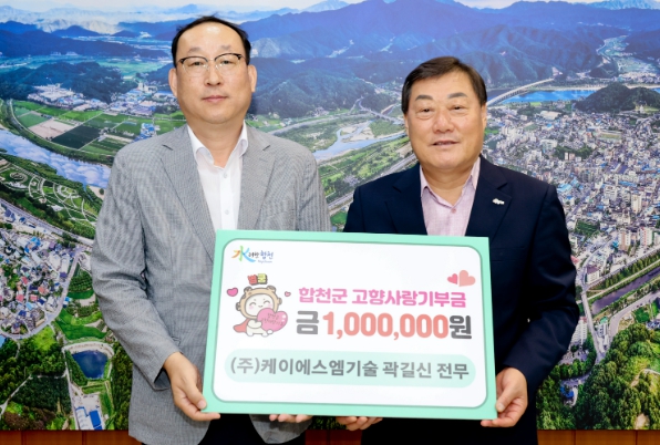▲ ㈜케이에스엠기술 곽길신 전무, 합천에 고향사랑기부금 1백만원 기탁 |