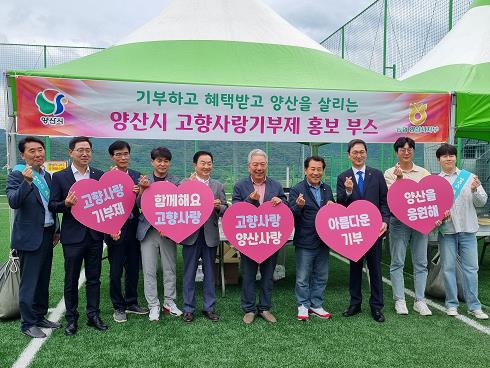 [뉴스서울] 양산시는 고향사랑기부제 활성화를 위해 지난 8일 하북체육공원에서 개최된 ‘NH농협은행 경남본부장배 유소년 축구 Festival’ 현장을 찾아 농협 양산시지부와 함께 홍보 활동을 펼쳤다.