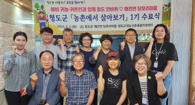 [뉴스서울] 청도군은 지난 2일 매전면 당호리마을에서 귀농귀촌을 희망하는 도시민들을 대상으로 ‘농촌에서 살아보기’ 프로그램 1기 수료식을 개최하였다.