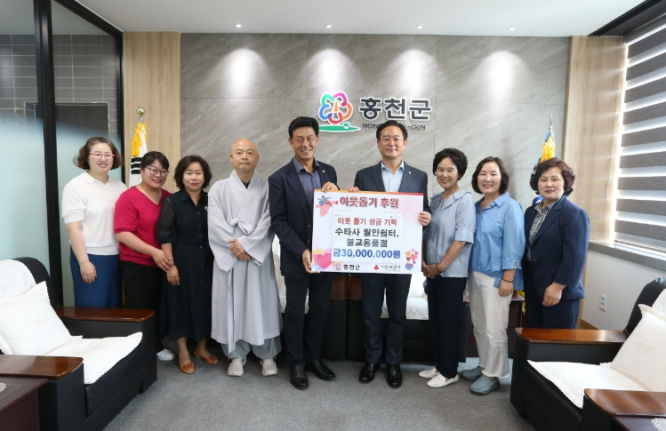 [뉴스서울] 수타사(주지스님 화광) 월인쉼터 · 불교용품점은 6월 10일 홍천군청을 방문하여 이웃돕기 성금 3,000만원을 기탁했다.