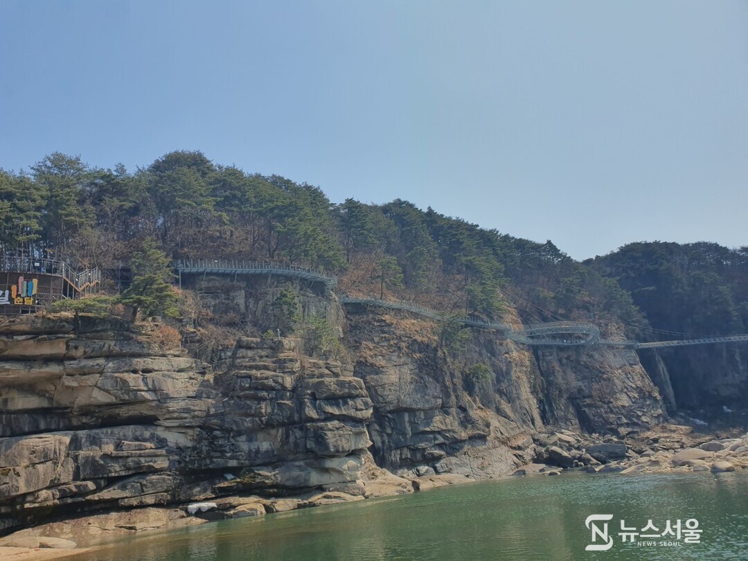 사진은 순담계곡에서 바라본 한탄강 주상전리길 잔도의 모습이다.