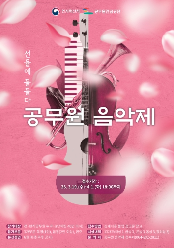 인사혁신처와 공무원연금공단(이사장 김동극)은 창의적이고 활기찬 공직문화를 꽃피우고 나눔 문화를 확산하기 위해 ‘2025 공무원예술대전’의 진행 일정을 담은 통합 계획을 20일 발표했다.