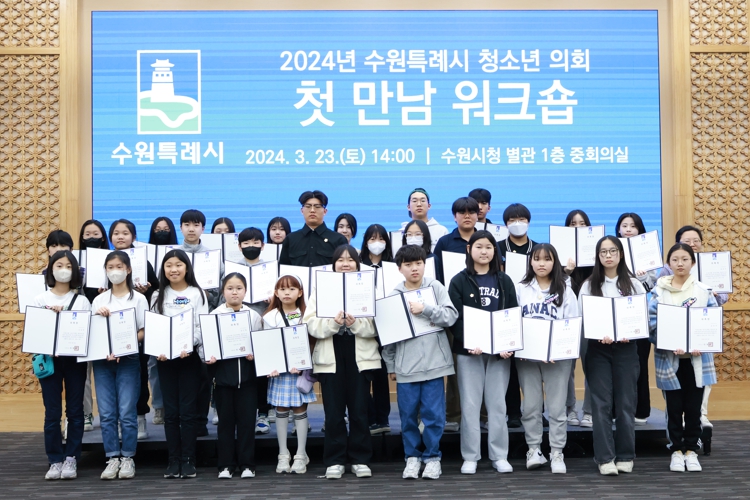 청소년의회 의원 30명이 참석한 이날 워크숍은 관계형성 프로그램과 청소년 참여활동 교육으로 진행됐다. 수원시는 청소년 의원들에게 위촉장과 의원 배지 등을 수여했다.