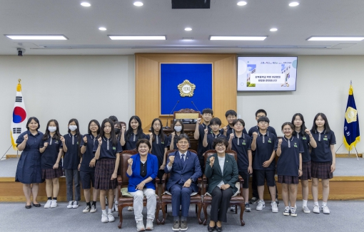 이날 견학 방문에는 최치효 의장, 유인애 부의장, 김명희 의원이 참석해 학생들을 환영했으며, 학생들의 연이은 질문 세례에 의원들은 학생들의 눈높이에 맞춰 답변해 주는 등 풀뿌리 민주주의를 체득하는 생생한 교육 현장을 만들어 냈다.