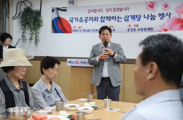 이번 행사를 주관한 용강동 교동협의회는 국가유공자 40여 명에게 감사의 마음을 담아 삼계탕을 대접했다.