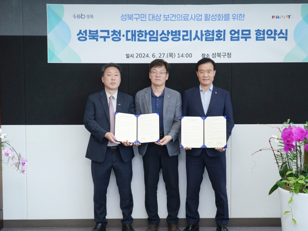 [뉴스서울] 지난 27일 서울 성북구가 구민 대상 보건의료사업 활성화를 위해 사단법인 대한임상병리사협회와 업무협약을 체결했다.