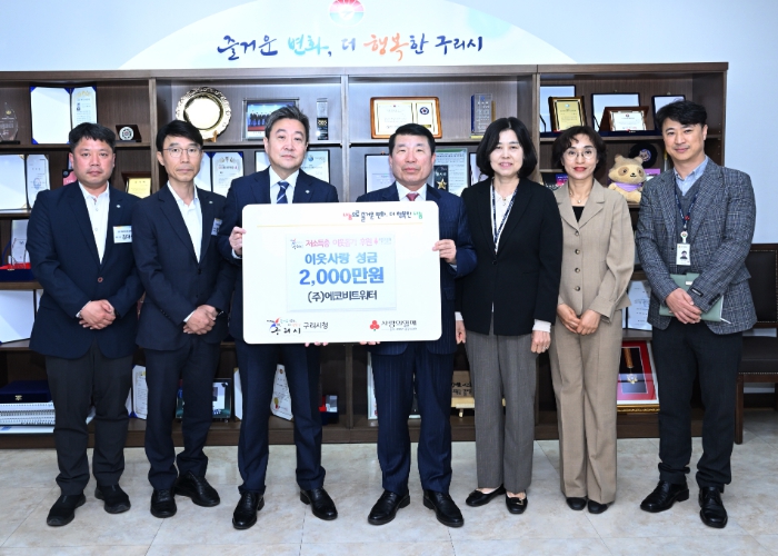 [뉴스서울] 구리시는 지난 9일 시장 집무실에서 ㈜에코비트워터로부터 이웃사랑 성금(2,000만 원)을 전달받았다.