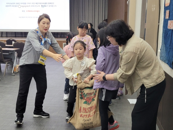 어린이들이 사생대회를 하는 동안 학부모는 커피브루잉으로 공정무역을 체험하고, 사생대회를 마친 어린이들도 10kg이 넘는 카카오자루를 끌어보며 카카오 농장에서 일하는 아이들의 가혹한 노동환경을 직접 경험해보기도 했다.