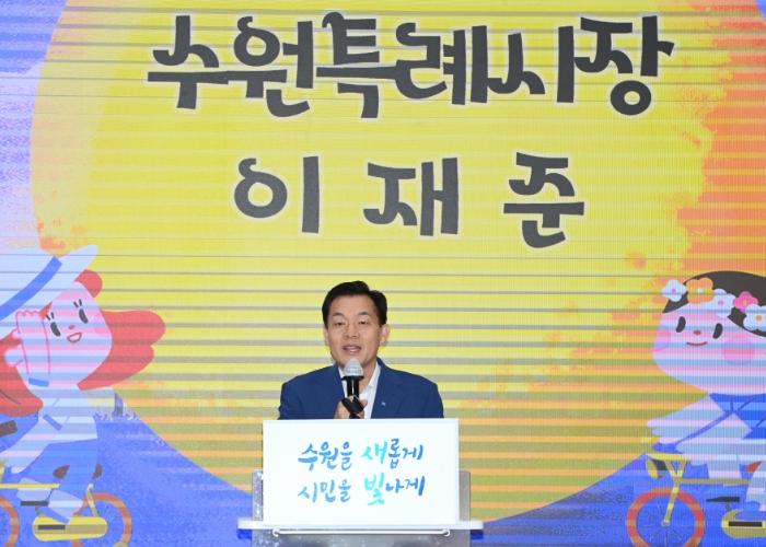 ▲ 이재준 수원시장이 전달식에서 인사말을 하고 있다. |