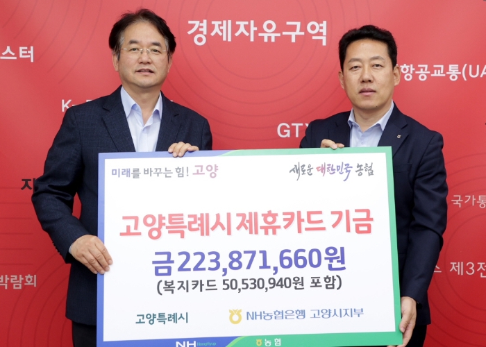[뉴스서울] 고양특례시는 지난 7일 NH농협은행 고양시지부로부터 제휴카드 적립기금 2억 2,387만 원을 수령했다고 밝혔다.