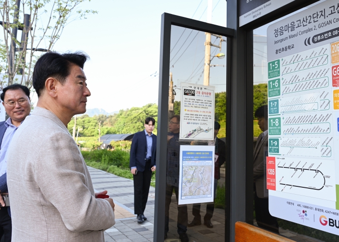 이날 김동근 시장은 정음마을 고산2단지 정류소에서 승차 대기 중인 시민들과 출퇴근 광역버스 이용 사항에 대해 대화를 나눴다.