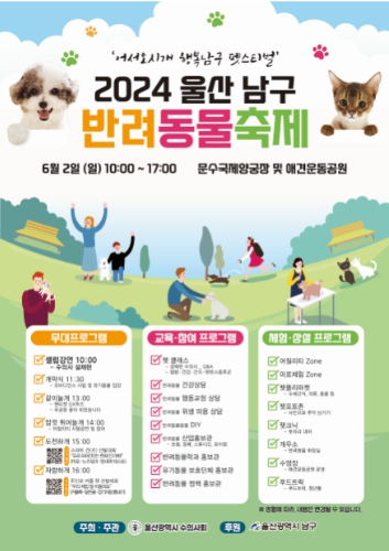 [뉴스서울] 울산 남구는 오는 6월 2일 문수국제양궁장과 애견운동공원 일대에서 반려동물 축제를 개최한다고 밝혔다.