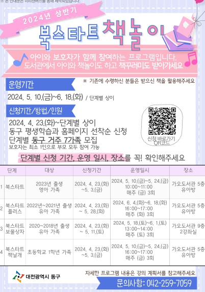 박희조 동구청장은 “아이와 부모가 책을 통해 소통하고 더욱 친해질 수 있는 소중한 시간이 될 이번 프로그램에 많은 관심과 참여를 바란다”며 “앞으로도 아이와 부모가 살기 좋은 교육 동구가 될 수 있도록 더욱 노력하겠다” 고 전했다.