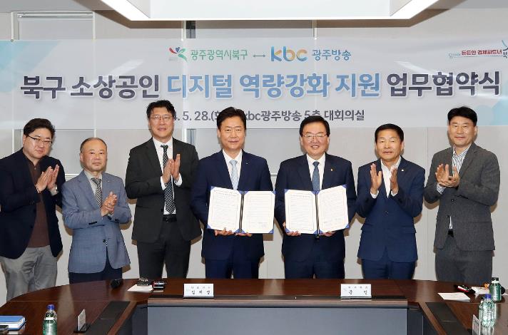 28일 북구에 따르면 이날 오전 10시 KBC 광주방송국 5층 대회의실에서 북구와 KBC가 소상공인 온라인 마케팅 강화에 맞손 잡고 ‘소상공인 디지털 역량 강화 지원 업무 협약’을 체결했다.