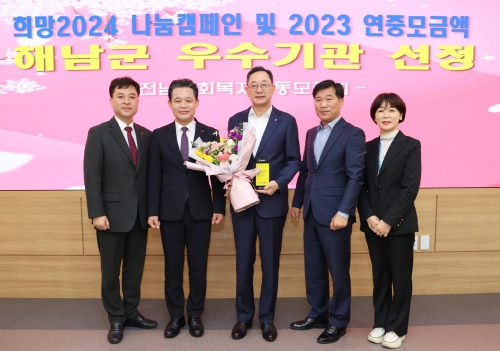 [뉴스서울] 해남군이 전남사회복지공동모금회에서 주관한 희망2024 나눔캠페인 및 2023년 연중 모금 실적 평가에서 우수기관으로 선정돼 감사패를 받았다.