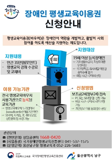 ▲ 울산 남구, 19세 이상 장애인 평생교육이용권 지원 신청 접수 |
