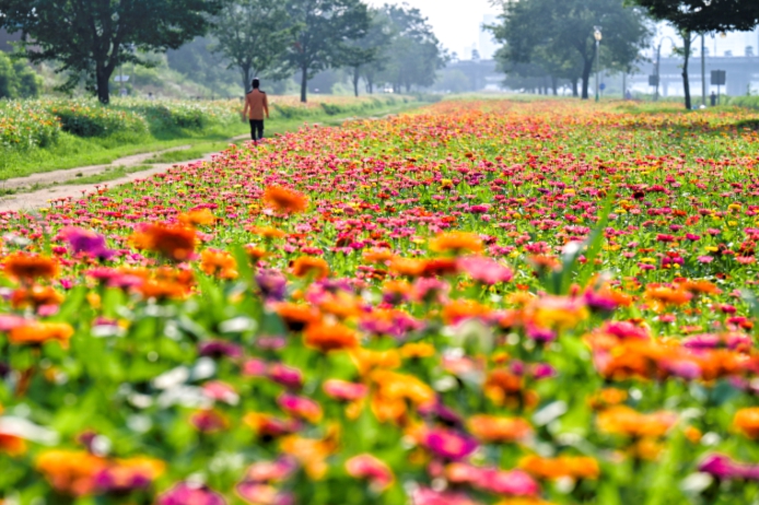 ▲ 남구 태화강 둔치, 무더위 속 형형색색 백일홍 만개 |