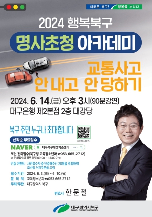 배광식 북구청장은 “지난달 많은 주민들의 참여로 성공적으로 마친 첫 번째 강연에 이어 두번째 강연 또한 많은 주민들이 참여하여 교통 법규의 중요성뿐만 아니라 사고의 위험성과 그에 대한 대비책을 배워 주변에 안타까운 일이 더 이상 발생하지 않길 바란다.”라고 밝혔다.