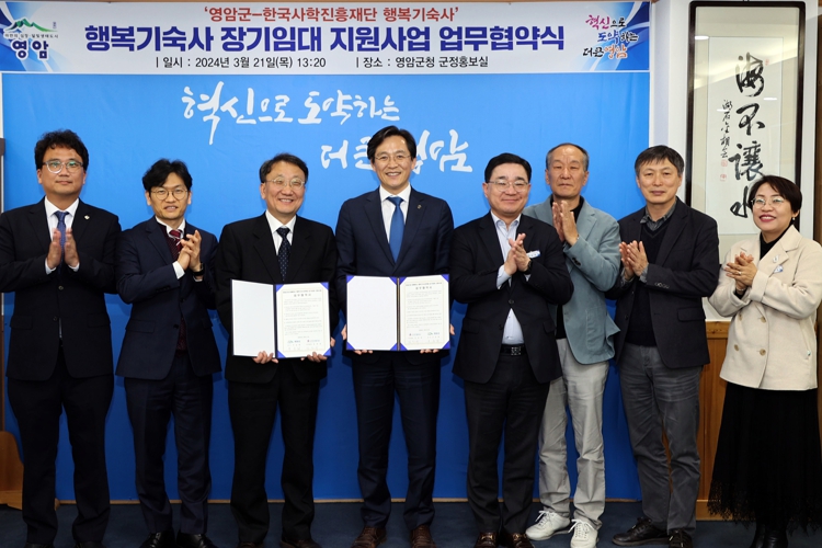 [뉴스서울] 영암군이 한국사학진흥재단 행복기숙사와 21일 군청에서 ‘행복기숙사 장기 임대 지원사업 업무협약’을 체결했다.