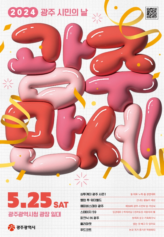 광주광역시는 오는 25일 광주시청 일원에서 ‘제59회 광주시민의 날’ 행사를 시민이 모여 즐기고 체험하는 ‘시민의 축제’로 개최한다.