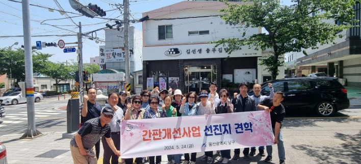 [뉴스서울] 울산 남구는 24일‘삼호곱창거리 일원 간판개선사업’의 원활한 추진을 위해 사업지역 업소주, 건물주, 주민협의체 등 20여명과 함께 행정안전부에서 우수지역으로 선정한 경남 통영시와 거제시를 견학했다.