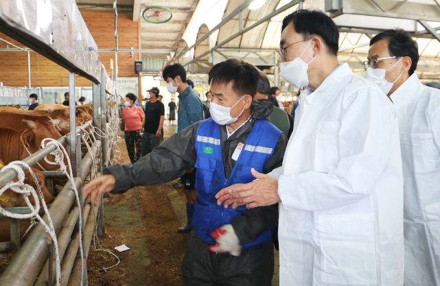 ▲ 나주시가 전라남도 ‘으뜸한우 송아지 브랜드’ 사업에 선정돼 명품 한우 브랜드 기반 구축을 위한 한우 개량사업을 추진한다. 사진은 나주축협 우시장을 방문한 윤병태 나주시장(사진제공-나주시) |