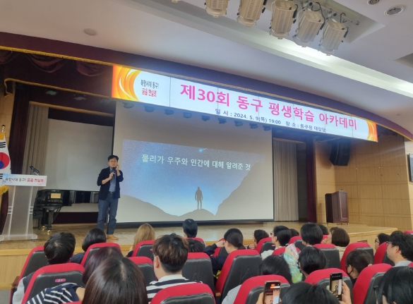 ‘물리학이 우주와 인간에 대해 알려준 것들’이라는 주제로 진행된 이번 강연은 동구 주민 등 350여 명이 참석한 가운데 청강객들의 열렬한 호응 속에서 성황리에 마쳤다.