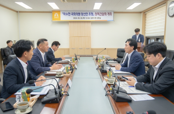[뉴스서울] 공주시는 9일 시청 상황실에서 박수현 국회의원 당선인과 정책간담회를 갖고 지역 현안을 논의했다. (사진제공)