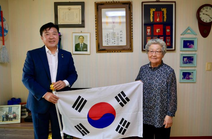 최재구 예산군수는 지난 19일 6·25참전유공자 故 박경서 님의 배우자 문한예(예산읍) 씨 댁을 방문해 태극기 등을 전달하고 유공자의 숭고한 희생과 고귀한 삶에 감사와 존경의 뜻을 표했다.