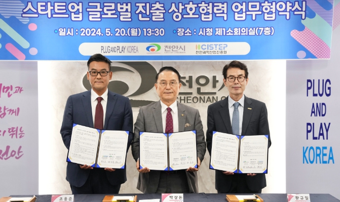 [뉴스서울] 천안시가 20일 세계 최대 창업기업 육성기관인 ‘플러그앤플레이(PLUG AND PLAY)’와 스타트업 글로벌 진출 지원 협력체계 마련을 위해 업무협약을 체결하며 지역 스타트업 해외 진출에 청신호를 켰다.