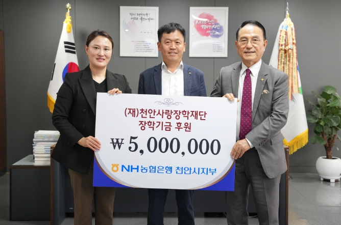 [뉴스서울] NH농협은행 천안시지부는 20일 천안시청을 방문하여 지역인재 육성 및 어려운 학생들을 위해 장학기금 500만 원을 (재)천안사랑장학재단에 기탁했다.