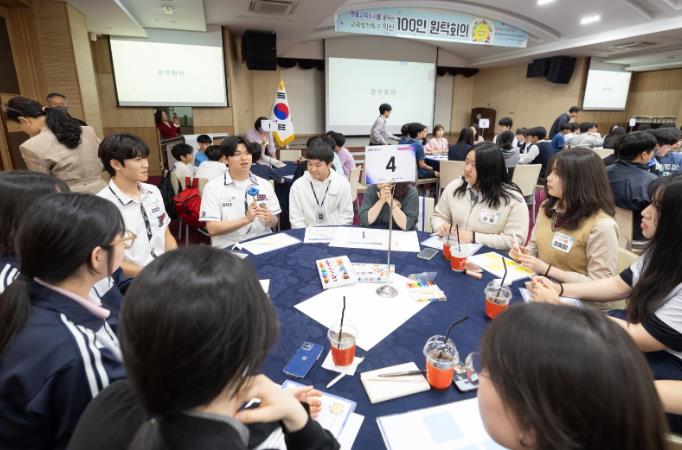 시는 9일 익산교육지원청과 함께 원광보건대학교 WM관에서 교육발전특구 100인 원탁회의를 개최했다.