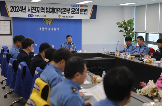 [뉴스서울] 사천해양경찰서는 9일 대규모 해양오염사고 시 신속하고 효율적인 방제조치 실행을 위해 사천지역 방제대책본부 운영 도상훈련을 실시했다.