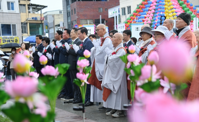 거창불교사암연합회장을 맡고 있는 거창포교당 해각스님은 개회사를 통해 “오늘 밝힌 5천여 개의 연등처럼 부처님의 자비와 광명이 모두의 마음을 밝혀 상생의 가치가 우선하는 부처님 세상이 되길 기원한다”라고 말했다.