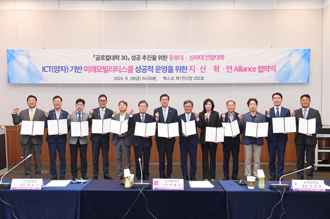 [뉴스서울] 부산시는 오늘(28일) 오전 9시 30분 벡스코에서 '글로컬대학 성공적 추진을 위한 동명대-신라대 연합모델 ICT(양자) 기반 미래모빌리티스쿨 지·산·학·연 업무협약'을 체결했다고 밝혔다.