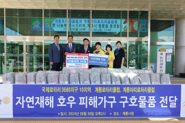 [뉴스서울] 계룡시는 30일 국제로타리3680지구로부터 이불세트 30채를 기탁받았다고 밝혔다. 이번 기탁은 관내 저소득 취약계층 및 호우 피해를 입은 주민에게 따뜻한 도움의 손길을 전하기 위한 것으로 알려졌다. 이응우 시장은 “국제로타리3680지구의 따뜻한 마음에 진심으로 감사드리며, 기탁물품은 도움이 필요한 이웃에게 소중히 전달하겠다”고 말했다.