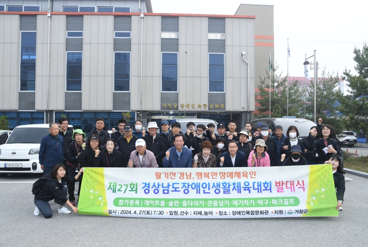 경남장애인생활체육대회는 경남장애인체육회와 밀양시 주최로 개최됐으며 경남도내 시·군 대표 3,300여명이 참가한 가운데, 거창군선수단은 7개 종목(탁구, 파크골프, 게이트볼, 슐런, 줄다리기, 큰줄넘기, 제기차기)에서 선수 66명, 임원 55명 총121명이 출전했다.