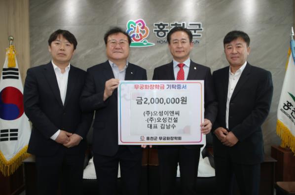 ㈜오성이엔씨·오성건설 김남수 대표는 “홍천군의 향토인재 육성을 위한 무궁화장학금을 기탁하게 되었다.”라고 말하며, “앞으로도 홍천군과 협력하여 지역경제 발전과 홍천군 인재육성에 조금이나마 도움이 될 수 있도록 최선을 다해 노력하겠다.”라고 전했다.