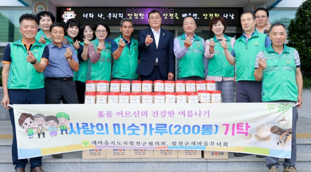 [뉴스서울] 새마을지도자합천군협의회(회장 배영효)와 합천군새마을부녀회(회장 이선숙)는 20일 합천군청을 방문해 어려운 이웃을 위해 미숫가루 320kg(1.6kg, 200통)을 기탁했다.