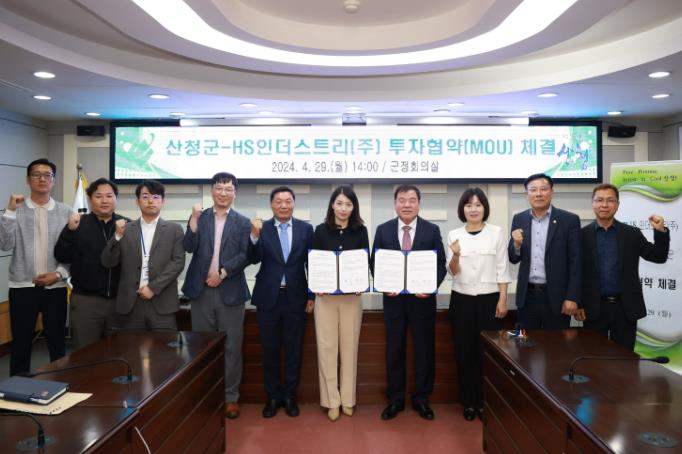 29일 산청군은 군청 군정회의실에서 HS인더스트리㈜와 104억원 규모의 투자협약을 체결했다고 밝혔다.