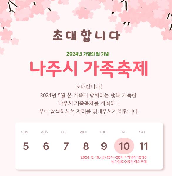 가족축제에 대한 자세한 세부 일정은 시 누리집 공고를 참고하거나 나주시청 사회복지과로 문의하면 된다.