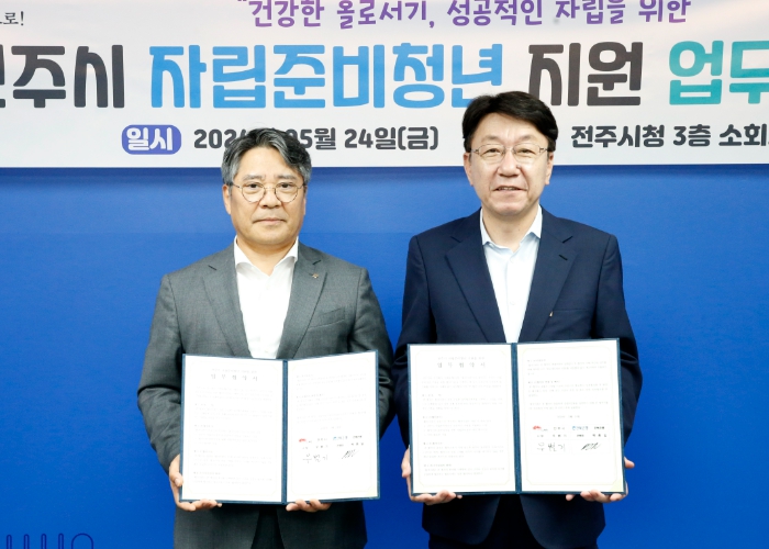 시와 전북은행은 24일 전주시장실에서 우범기 전주시장과 백종일 전북은행장 등 양 기관 관계자들이 참석한 가운데 자립준비청년의 지원을 위한 업무협약을 체결했다.