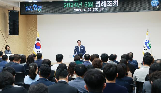 [뉴스서울] 함양군은 4월 29일 오전 군청 대회의실에서 직원 120여 명이 참석한 가운데 5월 정례조회를 가졌다.