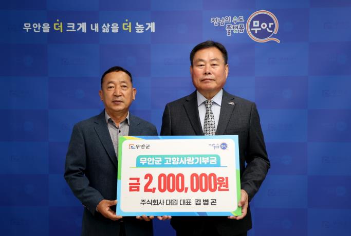 [뉴스서울] 전남 무안군은 8일 주식회사 대원 김병곤 대표가 고향사랑기부금 200만원을 기탁했다고 밝혔다.