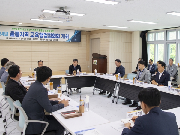 [뉴스서울] 울릉군과 울릉교육지원청은 27일 울릉교육지원청 3층 회의실에서 울릉군수와 울릉교육지원청 교육장을 비롯한 위원 12명이 참석한 가운데 ‘2024년 울릉지역 교육행정협의회’를 개최했다.