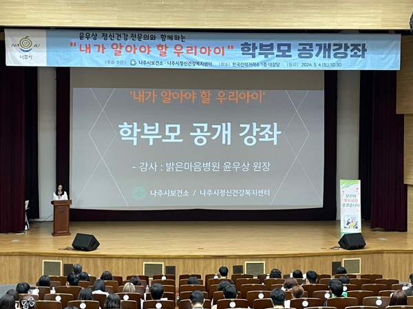 [뉴스서울] 나주시보건소가 가정의 달을 맞아 최근 나주문화예술회관에서 학부모 200여 명을 대상으로 정신건강 공개강좌를 열었다고 8일 밝혔다.